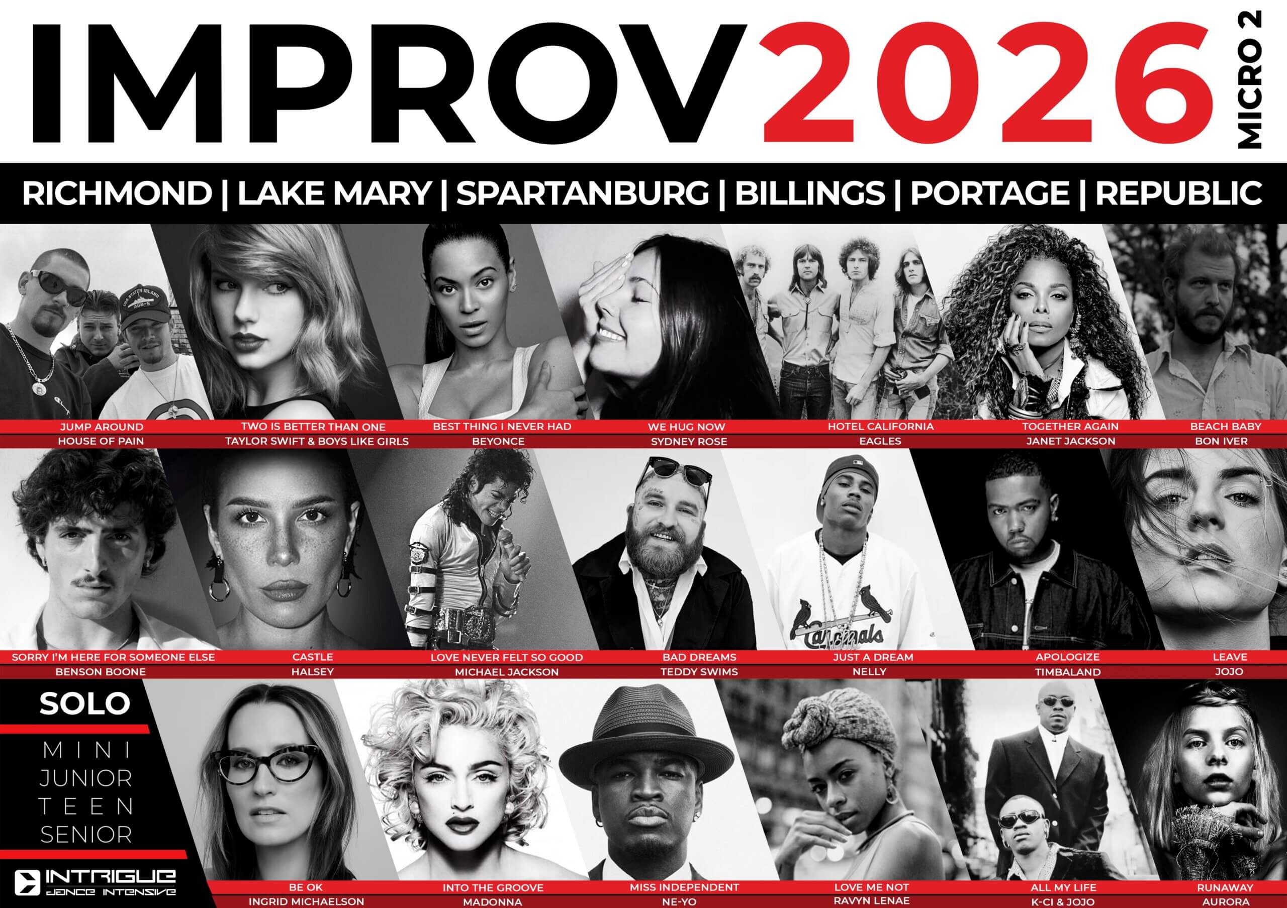 **Registration for Improv is now through DanceCompGenie. All improv registrations within 30 days of the event will be charged a late fee of $5.00.